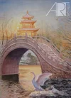 Snowy sunrise at Zhijin Bridge, China, watercolor, 11.25x 15" original: $450 giclee print: $160